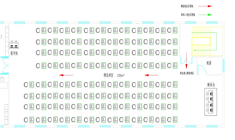 洛新機(jī)動(dòng)車駕駛?cè)丝荚囍行目偨ㄔO(shè)用地113畝,理論考區(qū)面積335㎡、分上下兩層,動(dòng)靜分離,理論候考廳寬敞明亮,環(huán)境整潔安靜,理論考臺(tái)100臺(tái);設(shè)有理論候考、待考面積360㎡;制證室、宣誓室、科目一考官休息室。理論考場(chǎng)安裝有人臉識(shí)別閘機(jī)三套;考場(chǎng)監(jiān)控臺(tái)三套;簽字臺(tái)一套;理論考試候考廳電視兩套;監(jiān)控及中心機(jī)房配套設(shè)施一套。每天可容納1500人考試,科目一工作配備人員6人,秩序員4人,輔助員2人??梢猿浞譂M足洛陽(yáng)及周邊地區(qū)的學(xué)員需求。