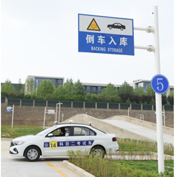 洛新機動車駕駛?cè)丝荚囍行闹饕譃榭荚噲龅?、考試服?wù)樓、其他配套公共服務(wù)設(shè)施,考務(wù)樓、服務(wù)樓各一幢,考務(wù)樓兩層總面積2279㎡,服務(wù)樓兩層總面積2812.9㎡,規(guī)劃設(shè)計充分體現(xiàn)了未來駕考行業(yè)智能化、科技化、規(guī)范化、信息化的前瞻特色。該考試中心科目二考訓場總占地面積51000㎡;考試車道數(shù)7條;考車共26輛,候考、待考面積357㎡,監(jiān)控中心72㎡,考官休息室24㎡,每天可容納780人考試,科目二工作人員計劃定崗12人,秩序員4人,車輛引導員8人。